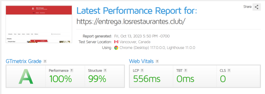 Análisis de rendimiento en GTmetrix Mis Entregas